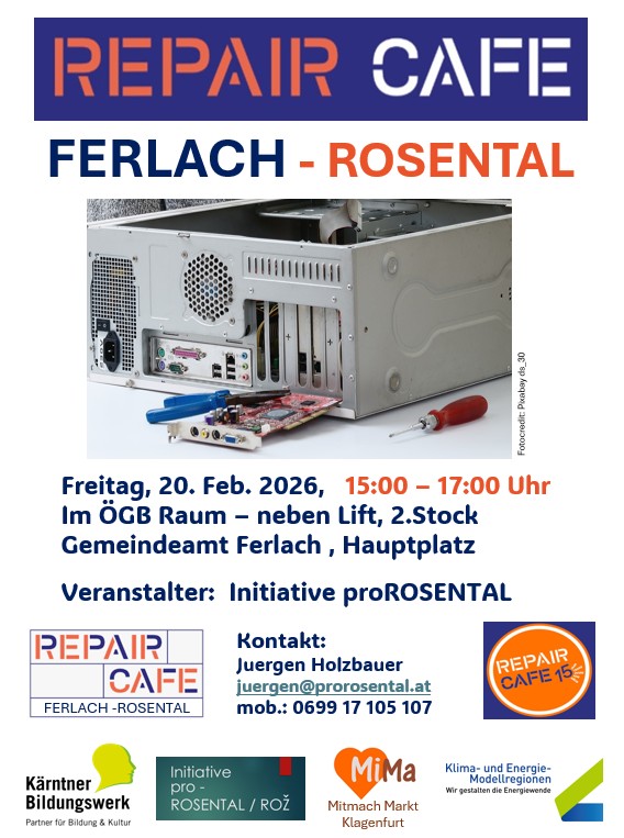 Einladung zum RepairCafe FERLACH Rosental - 20. Februar 2026